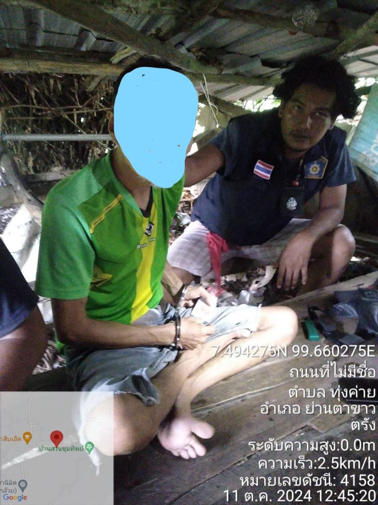 ตามคำสั่งของผู้บังคับบัญชาให้ระดมกวาดล้างปิดล้อมเครือข่ายยาเสพติดของสำนักงานตำรวจแห่งชาติ ในระหว่างเจ้าหน้าที่ชุดจับกุม ได้ออกตรวจพื้นที่รับผิดชอบจากนั้นได้รับแจ้งจากสายลับไม่ประสงค์ออกนามว่าบริเวณขนำข้างบ้านเลขที่ 21/2 หมู่ที่ 3 ตำบลทุงค่าย อำเภอย่านตาขาว จังหวัดตรัง มีวัยรุ่นกำลังมั่วสุมเสพยาบ้ากันอยู่และสร้างความเดือดรำคาญให้แก่ชาวบ้านในพื้นที่เป็นประจำ จากนั้นเจ้าหน้าที่ตำรวจชุดจับกุม จึงรายงานให้ผู้บังคับบัญชาทราบแล้ว วันนี้(11 ต.ค.67) เวลา 13.00 น. เจ้าหน้าที่ชุดจับกุมจึงได้เดินทางไปตรวจสอบตามที่ได้รับแจ้ง เมื่อเจ้าหน้าที่ตำรวจเดินทางไปถึงบริเวณขนำดังกล่าว และได้เห็นวัยรุ่นนั่งมั่วสุมยาเสพติดอยู่ จากนั้นเจ้าหน้าที่ได้แสดงตัวว่าเป็นเจ้าหน้าที่ตำรวจ และได้ตรวจค้นชายวัยรุ่น คือนายวิระชัยหรือจุ้ย คล้ายนอง (ทราบชื่อภายหลัง) พบยาบ้าทั้งหมดจำนวน 75 เม็ด ซึ่งเป็นยาบ้าเม็ดสีส้ม 74 เม็ด และยาบ้าเม็ดสีเขียวจำนวน 1 เม็ด บรรจุอยู่ในถุงพลาสติดใสแบบดึงเปิดกดปิด พร้อมเงินสด จำนวน 100 บาท โดยนายวิระชัยฯ ได้ให้การยอมรับว่า ยาบ้าดังกล่าวเป็นของตนจริง เจ้าหน้าที่ตำรวจได้แจ้งข้อกล่าวหาให้นายวิระชัยหรือจุ้ยฯ ทราบว่าต้องถูกจับกุมดำเนินคดีในคดีนี้ในข้อหา 1.มียาเสพติดให้โทษประเภท 1(เมทแอมเฟตามีนหรือยาบ้า) ไว้ในครอบครองอันเป็นการกระทำเพื่อการค้า 2.)เสพยาเสพติดให้โทษประเภท 1(เมทแอมเฟตามีน)โดยฝาฝืนกฎหมาย พร้อมกับแจ้งสิทธิให้ทราบดีแล้ว จากนั้นเจ้าหน้าที่ชุดจับกุมจึงได้ควบคุมตัว นายวิระชัยฯ พร้อมของกลาง มาที่ สภ.ย่านตาขาว จึงได้จัดทำบันทึกจับกุม พร้อมของกลางและเอกสารที่เกี่ยวข้อง นำส่งพนักงานสอบสวน สภ.ย่านตาขาว เพื่อดำเนินคดีตามกฎหมายต่อไป