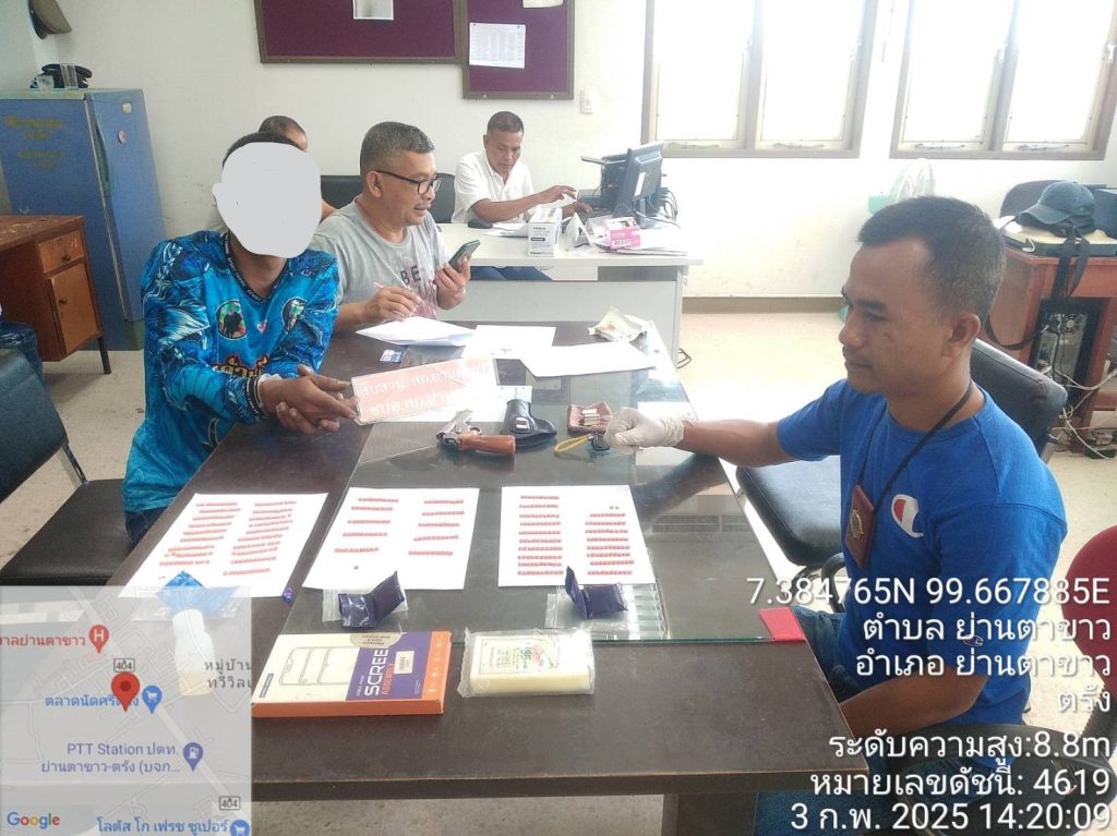 วันที่ 3 กุมภาพันธ์ 2568 เวลา 13.20 น. เจ้าหน้าที่ตำรวจชุดจับกุม ได้ทำการจับกุม นายสมประสงค์ บุญริน อายุ 27 ปี บ้านเลขที่ 23/1 หมู่ที่ 10 ตำบลทุ่งค่าย อำเภอย่านตาขาว จังหวัดตรัง พร้อมด้วยของกลางยาบ้าจำนวน 471 เม็ด อาวุธปืนพกสั้นไทยประดิษฐ์ใช้กับกระสุนปืนขนาด .38 จำนวน 1 กระบอก และกระสุนปืนขนาด.38 จำนวน 6 นัด จากนั้นเจ้าหน้าที่ตำรวจชุดจับกุมจึงได้ตรวจยึดยาบ้าและอาวุธปืน และของกลางทั้งหมดไว้เป็นของกลางในคดีนี้ และได้แจ้งให้นายสมประสงค์ฯ ทราบว่าต้องถูกจับกุมดำเนินคดีในคดีนี้ในข้อหา ” 1.) จำหน่ายยาเสพติดให้โทษประเภท 1(เมทแอมเฟตามีน) โดยการมีไว้เพื่อจำหน่ายอันเป็นการกระทำเพื่อการค้า โดยมีอาวุธหรือใช้อาวุธ 2.) มีอาวุธปืน(ไทยประดิษฐ์ไม่มีทะเบียน) และเครื่องกระสุนปืนไว้ในครอบครองโดยไม่ได้รับอนุญาต 3.) พาอาวุธปืนติดตัวไปในเมือง หมู่บ้านหรือทางสาธารณ โดยไม่ได้รับอนุญาต หรือมีเหตุจำเป็นและเร่งด่วนตามสมควรแก่พฤติการณ์ 4.) ขับรถโดยที่ไม่มีใบอนุญาตขับขี่ 5.) เสพยาเสพติดให้โทษประเภท 1 (เมทแอมเฟตามีน)โดย ฝ่าฝืนต่อกฎหมาย และ 6.) ขับขี่ยานพาหนะขณะมีสารเสพติดให้โทษประเภท1 อยู่ในร่างกายโดยฝ่าฝืนต่อกฎหมาย พร้อมกับแจ้งสิทธิให้ทราบดีแล้ว สถานที่เกิดเหตุ หน้าบ้านเลขที่ 9 หมู่ 2 ตำบลทุ่งค่าย อำเภอย่านตาขาว จังหวัดตรัง จากนั้นเจ้าหน้าที่ชุดจับกุมจึงได้ควบคุมตัว นายสมประสงค์ฯ เพื่อจัดทำบันทึกจับกุมนำตัวผู้ถูกจับกุมพร้อมของกลางและพยานเอกสารนำส่งพนักงานสอบสวน สภ.ย่านตาขาว ดำเนินคดีตามกฎหมายต่อไป