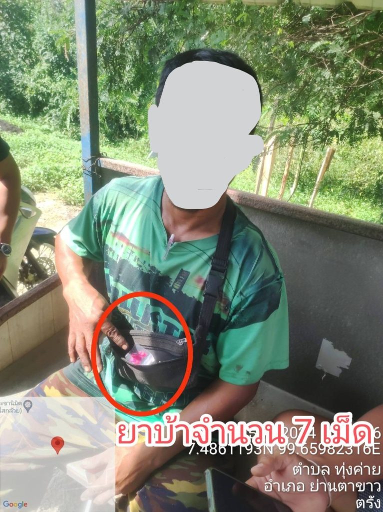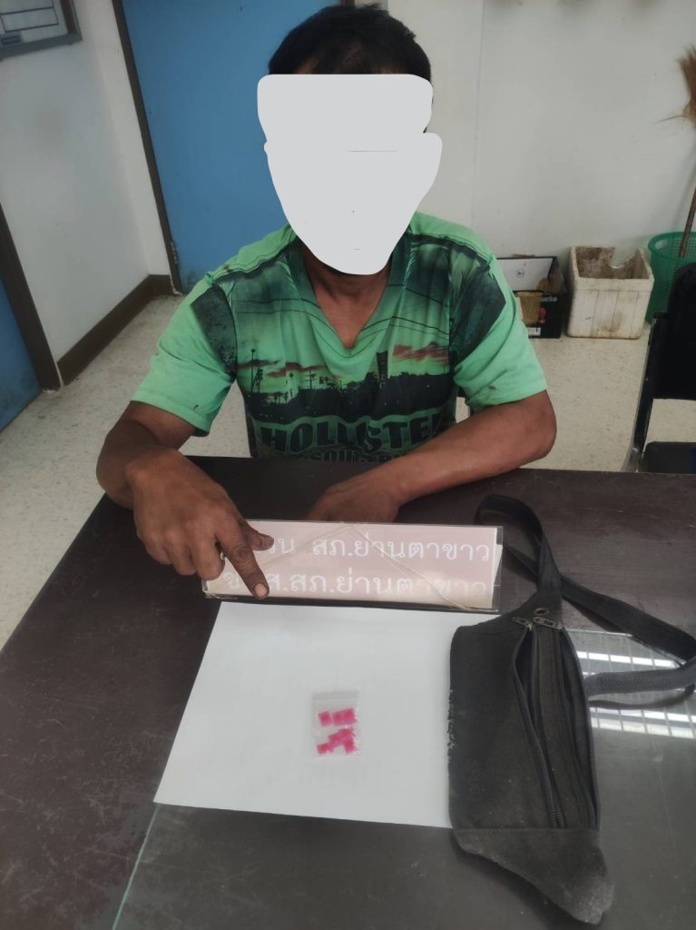 วันที่ 11 ธันวาคม 2567 เวลา 10.20 น. ขณะเจ้าหน้าที่ชุดจับกุมได้ออกตรวจพื้นที่รับผิดชอบในพื้นที่ ม.5 ต.ทุ่งค่าย อ.ย่านตาขาว จว.ตรัง จากนั้นได้เห็นชายคนหนึ่งยืนอยู่ริมถนน หน้าบริษัทบิกเกอร์วู้ดตรัง จำกัด ม.5 ต.ทุ่งค่าย อำเภอย่านตาขาว จังหวัดตรัง ท่าทางมีพิรุธ จากนั้นเจ้าหน้าที่ชุดจับกุมได้แสดงตัวเป็นเจ้าหน้าที่ตำรวจ เข้าตรวจค้นชายดังกล่าว สอบถามชื่อนายพัชรินทร์ คงพลับ ชื่อเล่นเหลือ (ทราบชื่อภายหลัง) ก่อนการตรวจค้นตัวนายพัชรินทร์ฯ ได้ยินยอมแต่โดยดี จากการตรวจค้นกระเป๋าสีดำแบบสะพาย โดยนายพัชรินทร์ฯ ได้สะพายไว้กับตัว ในขณะเจ้าหน้าที่ทำการตรวจค้น พบยาบ้าจำนวน 7 เม็ด โดยนายพัชรินทร์ฯ ได้ให้การยอมรับว่า ยาบ้าดังกล่าวเป็นของตนจริง จากนั้นเจ้าหน้าที่ตำรวจได้แจ้งข้อกล่าวหาให้นายพัชรินทร์ฯ ทราบว่าต้องถูกจับกุมดำเนินคดีในคดีนี้ในข้อหา “มียาเสพติดให้โทษประเภท 1(เมทแอมเฟตามีนหรือยาบ้า) โดยการมีไว้ครอบครองโดยผิดกฎหมาย” พร้อมกับแจ้งสิทธิให้ทราบดีแล้ว จากนั้นเจ้าหน้าที่ชุดจับกุมจึงได้ควบคุมตัว นายพัชรินทร์ฯ พร้อมของกลาง มาที่ สภ.ย่านตาขาว จึงได้จัดทำบันทึกจับกุม พร้อมของกลางและเอกสารที่เกี่ยวข้อง นำส่งพนักงานสอบสวน สภ.ย่านตาขาว เพื่อดำเนินคดีตามกฎหมายต่อไป