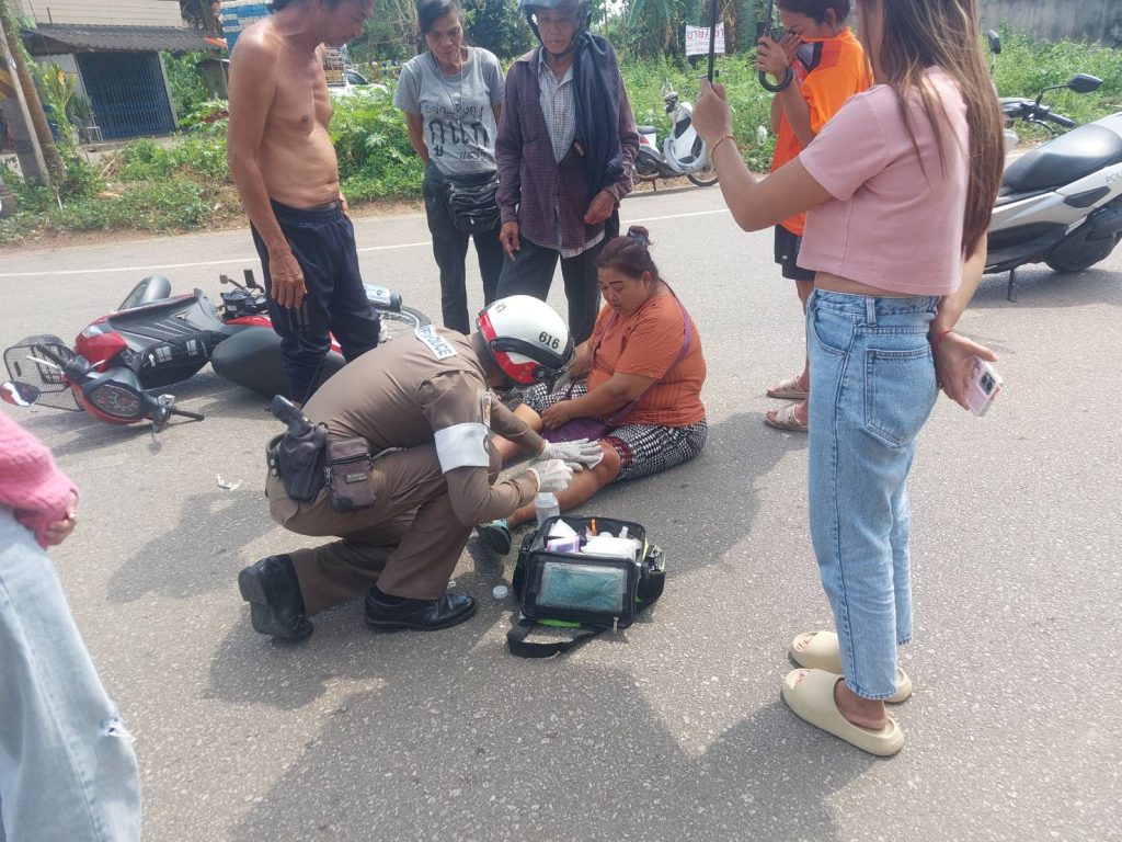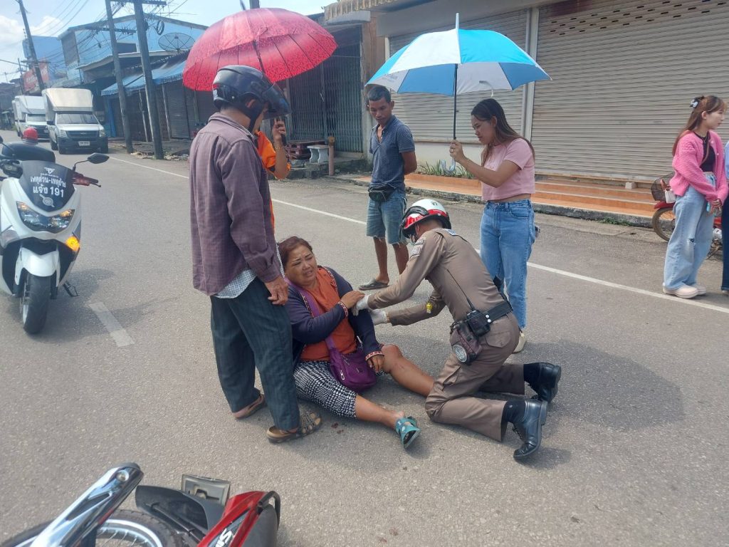 วันที่ 6 ก.พ. 2567 เวลา 13.40 น. ร.ต.ต.ธีรชัย คงฤทธิ์ รอง สว.(จร)สภ.ย่านตาขาว , ด.ต.วีรยุทธ ปิ่นทอง ผบ.หมู่(จร.)ฯ พร้อมด้วยเจ้าหน้าที่ตำรวจจราจร ได้ให้ความช่วยเหลือเบื้องต้นกรณีประชาชนประสบอุบัติเหตุรถเฉี่ยวชนกัน บริเวณ หน้าร้านสุหมุยการค้า ม.1 ต.ย่านตาขาว อ.ย่านตาขาว จ.ตรัง มีผู้ได้รับบาดเจ็บ 1 ราย นำตัวส่งโรงพยาบาลย่านตาขาว