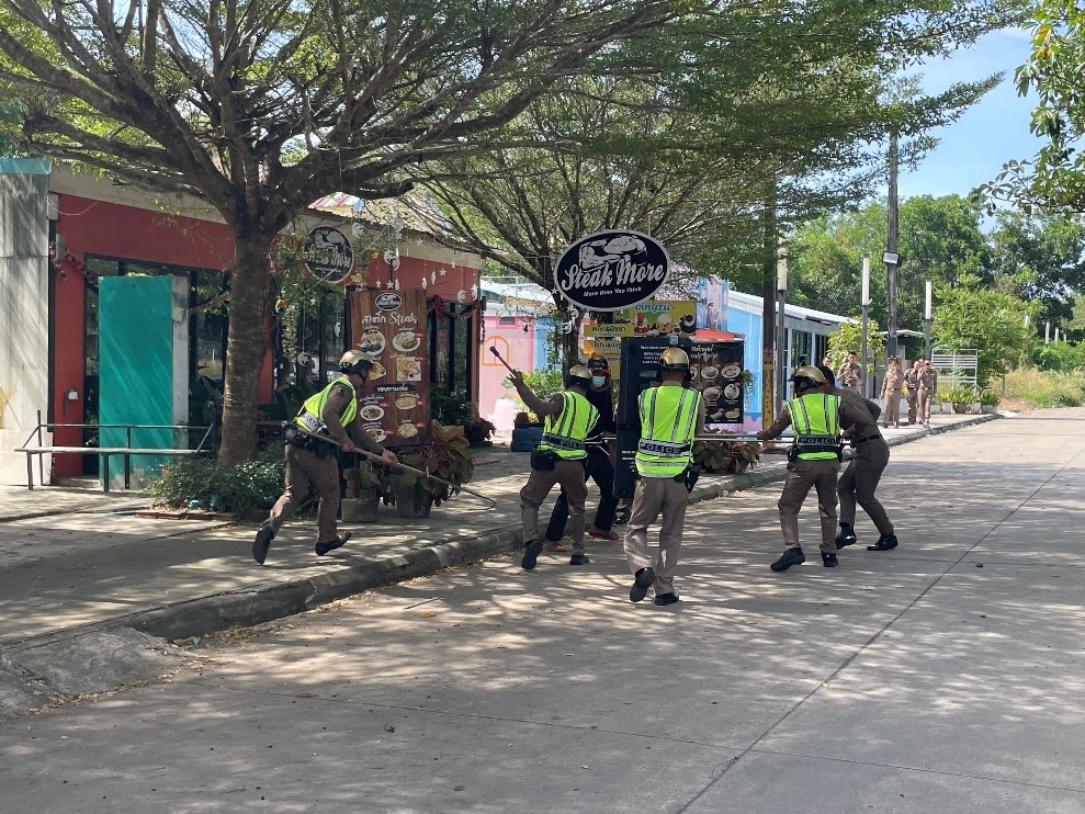 วันที่ 28 มกราคม 2568 เวลา 11.00 น. น. พ.ต.ท.นรินทร์ ช่วยสุข รอง ผกก.ป.สภ.ย่านตาขาว ได้เรียกแถวข้าราชการตำรวจชุดสายตรวจเพื่อซักซ้อมแผนเผชิญเหตุบุคคลคลุ้มคลั่งโดยมีอาวุธ เพื่อเพิ่มประสิทธิภาพในการเข้าระงับเหตุ ของข้าราชการลดอัตราสูญเสีย หรือบาดเจ็บจากการเข้าระงับเหตุ ณ บริเวณหน้าหมู่บ้านศรีตรัง หมู่ที่ 1 ตำบลย่านตาขาว อำเภอย่านตาขาว จังหวัดตรัง