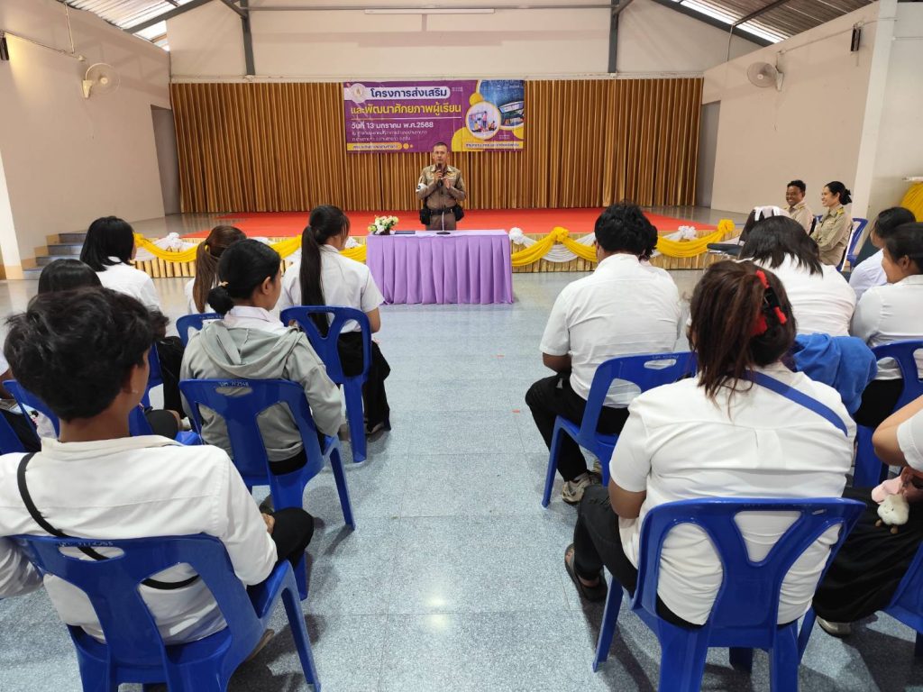 วันที่ 13 ม.ค.68 เวลา 10.00 น. พ.ต.อ.ภาสกร ภักดีวานิช รอง ผบก.ภ.จว.ตรัง รรท.ผกก.สภ.ย่านตาขาว, มอบหมาย พ.ต.ท.นรินทร์ ช่วยสุข รอง ผกก.ป. , สภ.ย่านตาขาว พ.ต.ท.ถาวร สังขมัน สว.อก.ฯ และ เจ้าหน้าที่ตำรวจจราจร ร่วมกับผู้อำนวยการสถานศึกษาศูนย์ส่งเสริมการเรียนรู้ระดับอำเภอย่านตาขาว ดำเนินการให้ความรู้เรื่องยาเสพติดและอบายมุขในสถานศึกษาแก่นักศึกษา ตามโครงการ “ส่งเสริมและพัฒนาศักยภาพผู้เรียนฯ ” ณ ศาลาประชาคมอำเภอย่านตาขาว