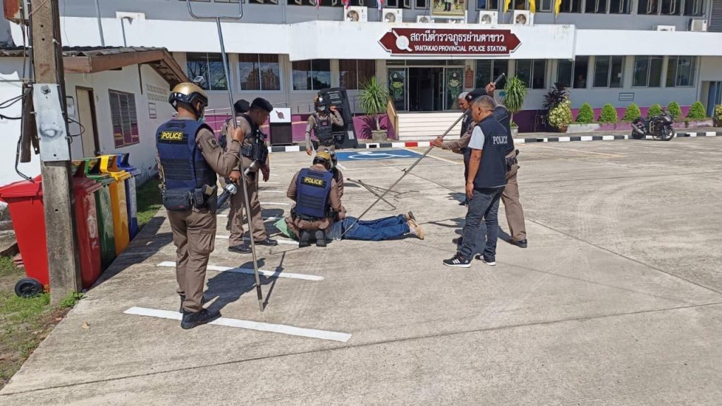 ตรวจราชการ ประจำปี 2567 13 พฤษภาคม 2567 โดย admin / ข่าวประชาสัมพันธ์,ข่าวกิจกรรม,ข่าวประชาสัมพันธ์,ข่าวภารกิจผู้บังคับบัญชา,ไม่มีหมวดหมู่ ตรวจราชการ ประจำปี 2567 เมื่อวันที่ 9 พ.ค. 67 เวลา 09.00 น. พล.ต.ต.โอภาส ทั่งทอง ผบก.กต.9 จต. พร้อมด้วยคณะผู้ตรวจราชการ ได้มาตรวจเยี่ยมติดตามผลการปฏิบัติงาน ของ สภ.ย่านตาขาว ตามแผนการตรวจราชการของ ตร. ประจำปีงบประมาณ พ.ศ.2567 โดยมี พ.ต.อ.ประพัตร์ ศรีอนันต์ รอง ผบก.ภ.จว.ตรัง , พ.ต.อ.พูนศักดิ์ เซ็งแซ่ ผกก.สภ.ย่านตาขาว และข้าราชการตำรวจในสังกัดให้การต้อนรับ FacebookFacebookXXLINELine