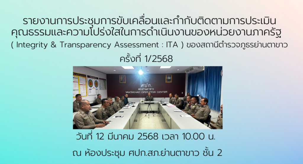 Home » มาตรฐาน ITA » มาตรการภายในเพื่อป้องกันการทุจริต » 025 : การรายงานผลการดำเนินการตามมาตรการการยกระดับคุณธรรมและความโปร่งใสภายในหน่วยงาน